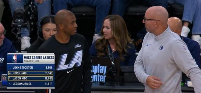 基德与保罗两位传奇控卫场边聊天。