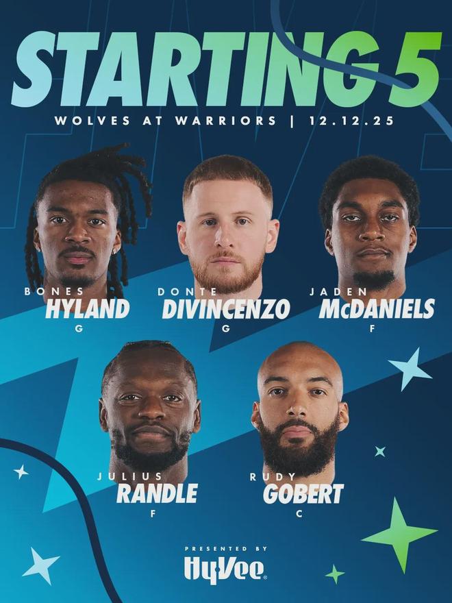 勇士首发阵容:库里、斯潘塞、希尔德、巴特勒、波斯特。森林狼首发:海兰德、迪温岑佐、麦克丹尼尔斯、兰德尔、戈贝尔。爱德华兹本赛季场均28.7分4.9篮板3.8助攻1.2抢断0.8盖帽,今天他因脚伤休战,对森林狼影响挺大的。