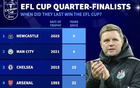 德转列英联杯八强距上次夺冠时间:阿森纳32年,切尔西10年